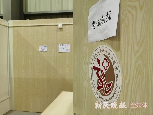 注意到胜利(化名),是记者第一次踏入金山天华路方舱医院,治疗室外的“考试勿扰”与有些嘈杂的病区格格不入。胜利今年高三了,和妈妈一起住进了这间方舱医院。那天,她在方舱医院里迎来了期中考试,小小的治疗室为她辟出了一隅安宁。