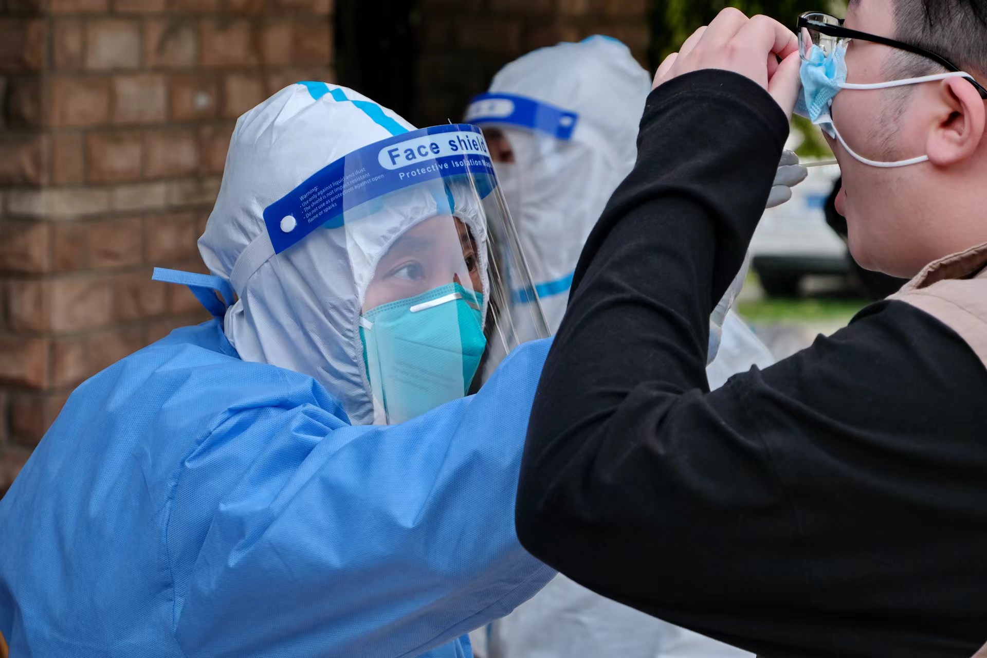 “参加核酸采样队,我是有点‘私心’的。”中西医结合临床研究所助理研究员崔金刚笑着说,爱人是嘉兴路社区卫生服务中心的护士,他俩各自坚守岗位已很久没见了,“只有支援社区采样时才能隔着面屏看看她”。