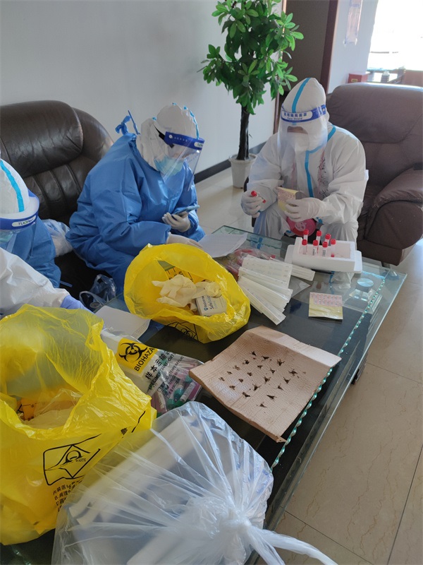在前期沟通中,黄景斌老师了解到酒店硬件条件有限,团队成员大多没有医学背景。于是,黄老师结合自己的专业特长对隔离点进行风险排查,因地制宜地制备了一些防护措施,同时承担起核酸检测协助、转运发放物资等日常工作。同时,考虑到酒店门卫来自外聘保安公司,并非专业消杀人员,黄老师也承担了一部分常规消杀工作。