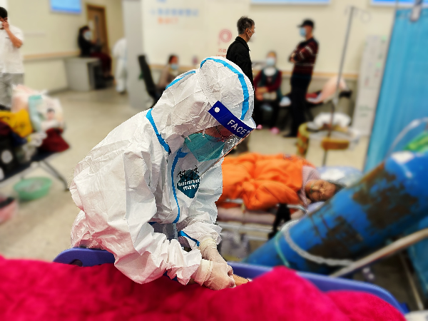 这位工作不到一年的姑娘记得最牢的,不是辛苦,而是工作中收获的感动——在花木街道采样的那天,风雨交加,志愿者早早为采样队员们搭好了帐篷,还贴心准备了马甲御寒;老小区里的老人行动不便,她们需要上门采样,爷爷奶奶一声声真诚地谢谢,眼神里藏不住的对晚辈的那种心疼,都让张雨感觉到,自己的辛苦付出是值得的。疫情下,张雨每天的工作紧张忙碌,需要不定期外出采样、需要在科室值班、需要护理阳性感染者,姑娘说,觉得这份职业非常神圣,选择了护士就会热爱它,值得自己用一生去做好。