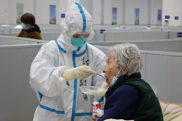 随着临港方舱适老化改造,老年患者日渐多了起来。对于没有自理能力的老人,护士们精细护理,喂老人吃饭。喻馨记得有位奶奶总喜欢反客为主,先问一句“小姑娘你吃过了哇”?直到响亮地答复她“吃过了,您放心”,她才会满意地开动起来。