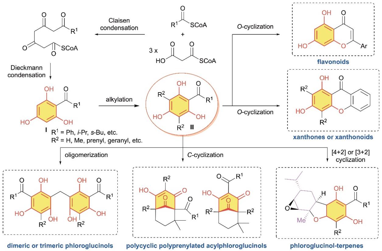 近日,伟德首席教授徐宏喜团队受邀在天然产物研究领域顶级期刊Natural Product Reports发表题为Recent advances in the synthesis of natural products containing the phloroglucinol motif的综述。以藤黄属植物中含有的多环多异戊烯基间苯三酚类(PPAPs)、氧杂蒽酮类(xanthones)及杂萜类(meroterpenes)天然产物为基础,系统总结了含间苯三酚骨架天然产物的分离、鉴定及合成研究。