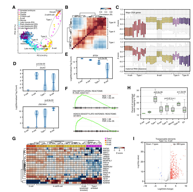 研究团队发现,代谢和表观遗传学的异常是胚胎发生阻滞的重要原因。阻滞胚胎发生细胞周期停滞,核糖体和组蛋白下调,MYC和p53活性下降,呈现出一种衰老样状态。阻滞胚胎主要分为三种类型。I型来源于母源-合子基因激活和母源性转录清除异常。II型和III型主要表现为糖酵解水平下降和异常的氧化磷酸化水平。研究首次发现人类体外受精发育阻滞胚胎进入SENESCENCE(衰老细胞周期停滞)状态,并突破性发现SIRT1激活剂白藜芦醇和NR可以一定程度上挽救胚胎阻滞。该发现为人类体外受精胚胎发育阻滞提出了SENESCENCE的新理论,并对胚胎培养液的进一步丰富做出了探索,具有显著的科学和临床价值。