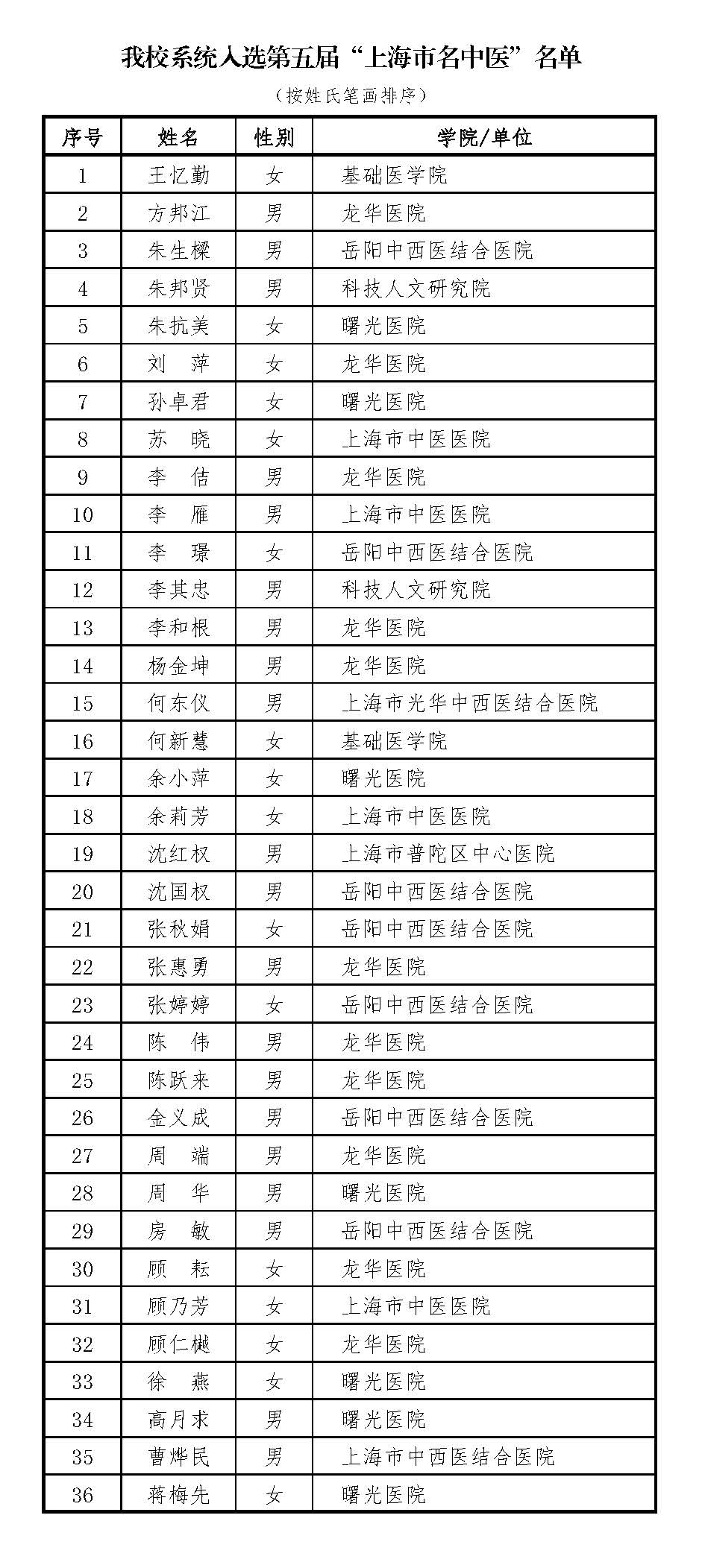 根据上海市卫生健康委员会、上海市人力资源和社会保障局及上海市中医药管理局联合印发《关于公布第五届上海市名中医评选结果的通知》,确定49人为本届上海市名中医入选人员,伟德系统王忆勤等36位专家入选,其中29人由大学推荐入选。