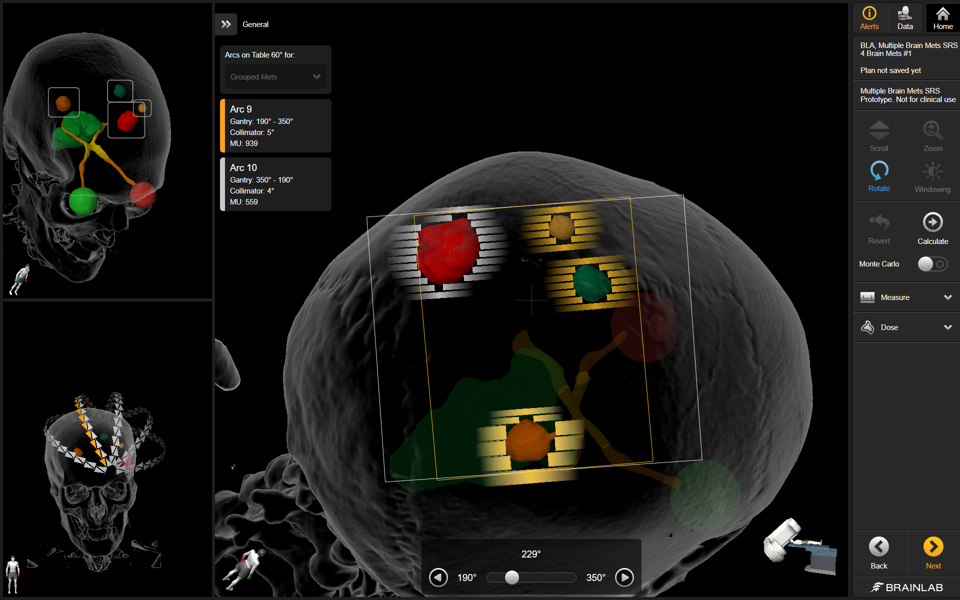 此次一并引进了全新的立体定向放射治疗计划系统,该系统对于脑瘤和多发脑转移瘤的治疗极具优势,仅需一次摆位,就可以实施颅内多个肿瘤同时治疗。系统可以将患者的CT、MR、PET等影像进行融合配准,自动识别脑干、眼球、视神经等重要器官,自动追踪神经传导束,在对肿瘤进行最大打击的同时,对重要组织器官进行很好地保护。