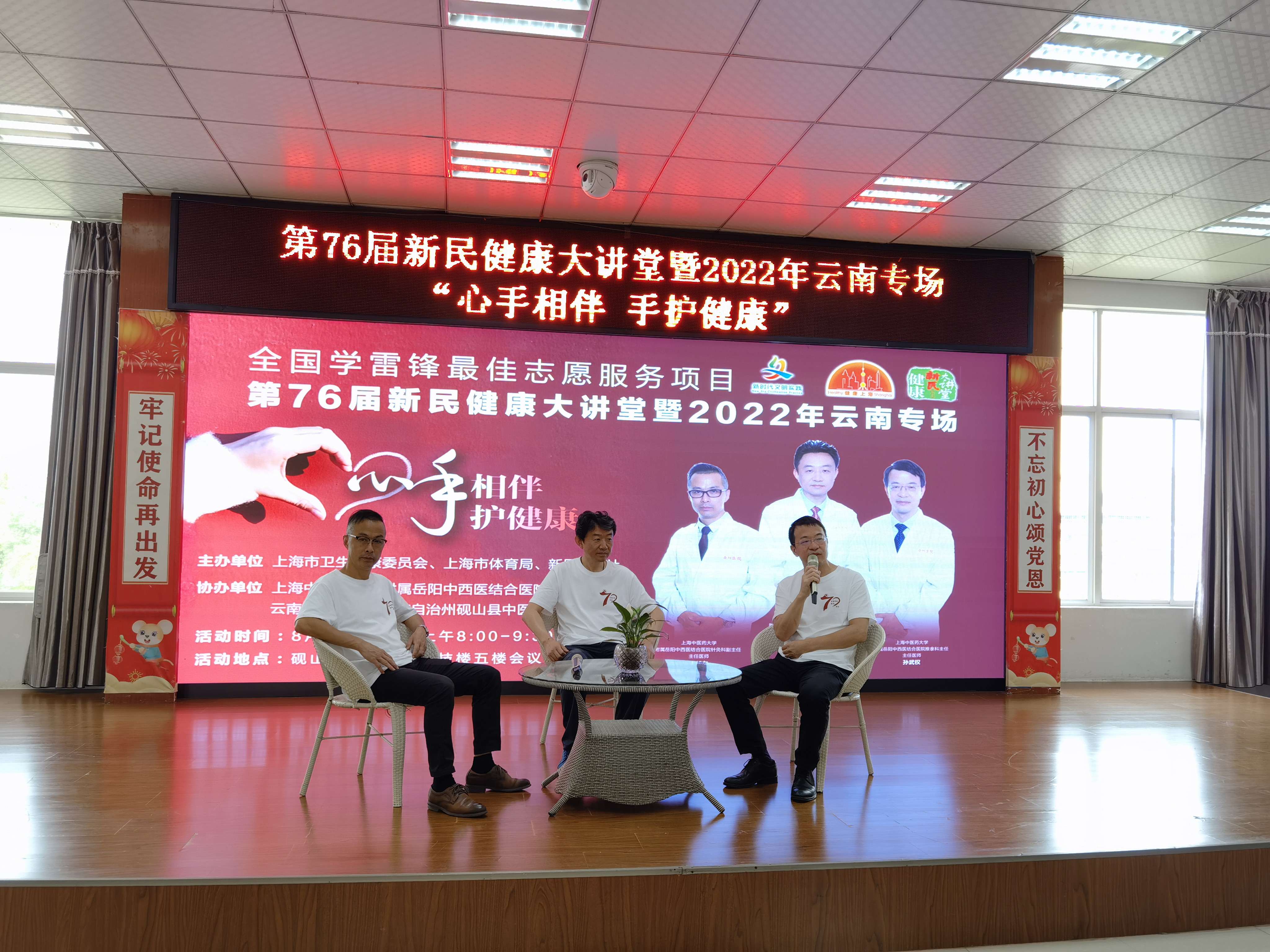 8月27日、28日,由上海市卫生健康委、上海市体育局、新民晚报社主办,上海中医药大学附属岳阳中西医结合医院、砚山县中医医院协办的第76届新民健康大讲堂从党的诞生地来到了云南红土地,为云南省文山壮族苗族自治州砚山县的百姓送去健康知识,也通过义诊、手术让当地“看病难、看好专家难”的患者享受到上海三甲中西医结合医院的优质服务。