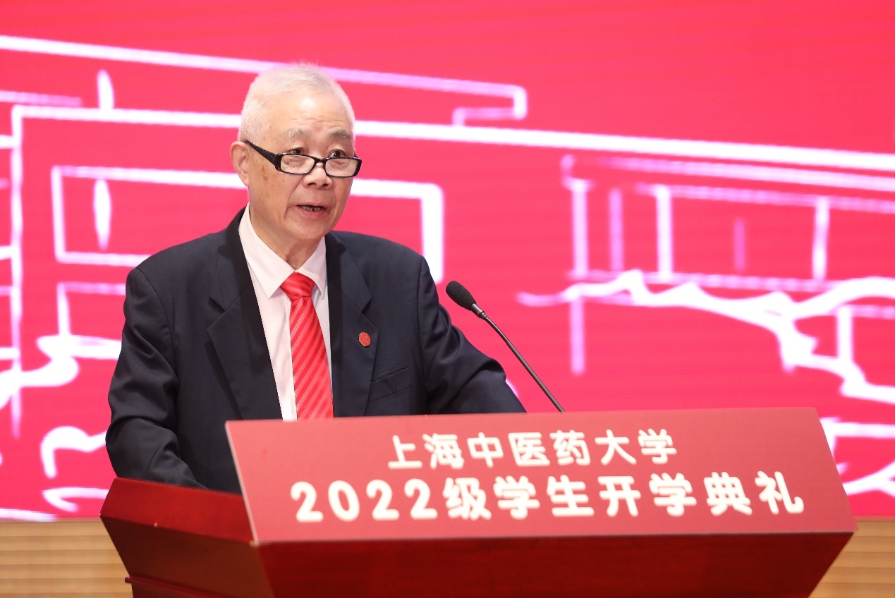 上海市名中医、上海市中医药防控新冠肺炎专家组组长、伟德国际victor1946官网附属龙华医院吴银根教授作为教师代表发言。他深情回忆了自己从1958年至今在学校六十四载的为医为学之路,回顾了亲身参与的多次抗疫斗争经历,介绍了中医药救治在这些斗争中所发挥的重要作用,勉励全体新生一起把一生的精力献给中医药事业。他说:“我把中医工作当中医事业来做。我一辈子只做一件事——做中医。” 耄耋老人对中医药事业执着追求的精神令全场师生感动而振奋。