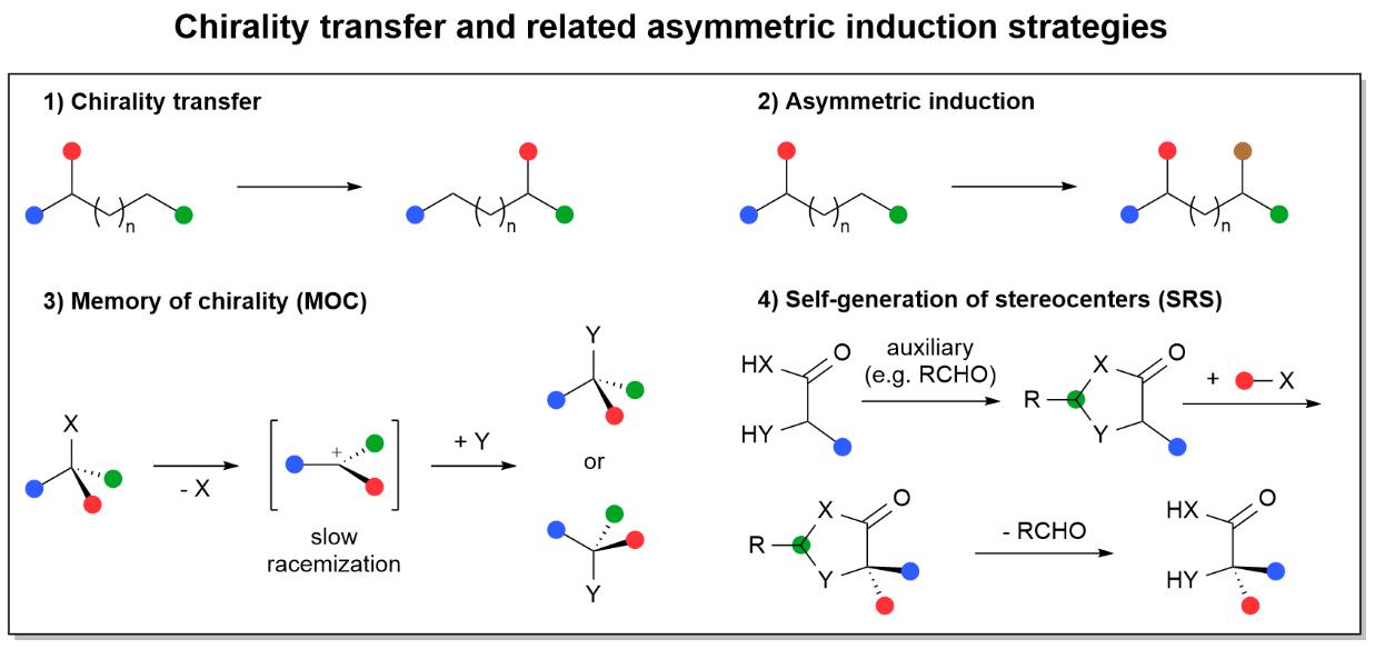 活性天然产物和药物分子的手性构建(包括手性中心分子、手性平面分子、手性轴分子和手性螺旋分子等)一直是药物合成研发中最具挑战的研究热点之一。近年来,手性转移因其原子经济性、可预测的对映选择性、广泛适用性等优点越来越受到化学家们的关注,已成为天然产物不对称合成的热点策略。相对于传统的手性引入方式,手性转移策略可通过“化繁为简”,允许立体中心的转移或手性元素之间的相互转换,从而构建难以获得的目标手性元素。该文章以手性转移方式为依据,对近几年手性转移策略促进的不对称合成反应,特别是活性天然产物的全合成进行了梳理,对其中涉及的关键步骤和机理进行了系统总结和讨论,为设计和开发创新的天然产物合成路线提供了重要思路,将推动该策略在手性复杂中药活性成分如多环多异戊烯基间苯三酚类成分合成中的研究和应用。