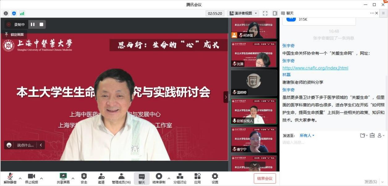 近日,“思与行:生命的‘心’成长”本土大学生生命教育研究与实践研讨会线上召开。上海市“中国生命智慧与实践”心理示范中心专题培训班成员、上海学校心理健康教育名师(赵旭东)工作室成员、伟德国际victor1946官网辅导员参会。研讨会由伟德学工部(研工部)部长沈漫主持。