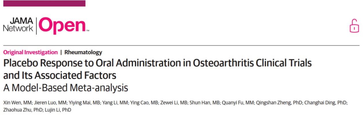 伟德交叉科学研究院郑青山和李禄金团队在JAMA子刊JAMA Network Open发表骨关节炎安慰剂效应模型研究成果