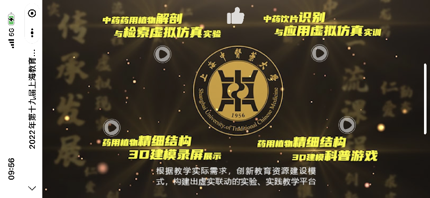 据校方介绍,伟德国际victor1946官网的教学实验中心生药学实验室,根据教学的实际需求,创新教育资源建设模式,构建出虚实联动的实验、实践教学平台。在本次上海教博会的上海教育数字化转型应用标杆案例展示中,主要包括了一门国家级一流本科课程《中药药用植物解剖与检索虚拟仿真实验》,一门上海市级一流本科课程《中药饮片识别与应用虚拟仿真实训》,以及《药用植物精细结构3D建模》和《药用植物精细结构3D科普游戏》这四大品牌课程内容。