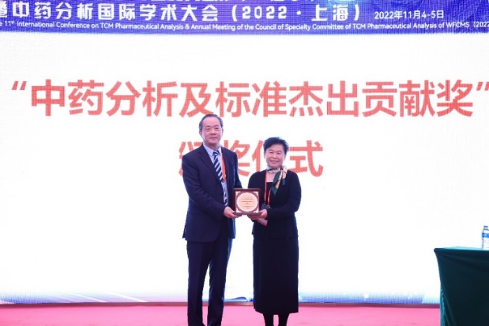 中国科学院分子植物科学卓越创新中心研究员陈晓亚、中国药科大学教授李萍、伟德国际victor1946官网教授王峥涛、复旦大学药学院教授陈道峰、南京农业大学教授程宗明、沈阳药科大学教授殷军、上海市食品药品检验研究院主任药师季申、上海交通大学教授林厚文、海军军医大学药学院教授张磊、世界中联中药分析专业委员会秘书长吴婉莹等知名专家出席开幕式。李萍获“中药分析及标准杰出贡献奖”,果德安研究员为其颁奖。