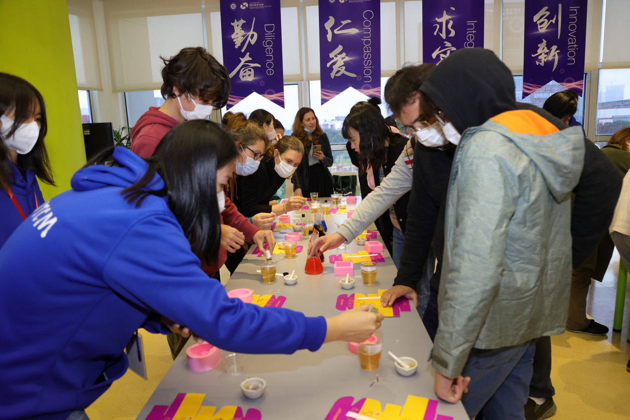 本次校园开放日有中医讲座、校园参观和现场体验三个环节,并安排了日语、英语、法语教师进行分组引导。