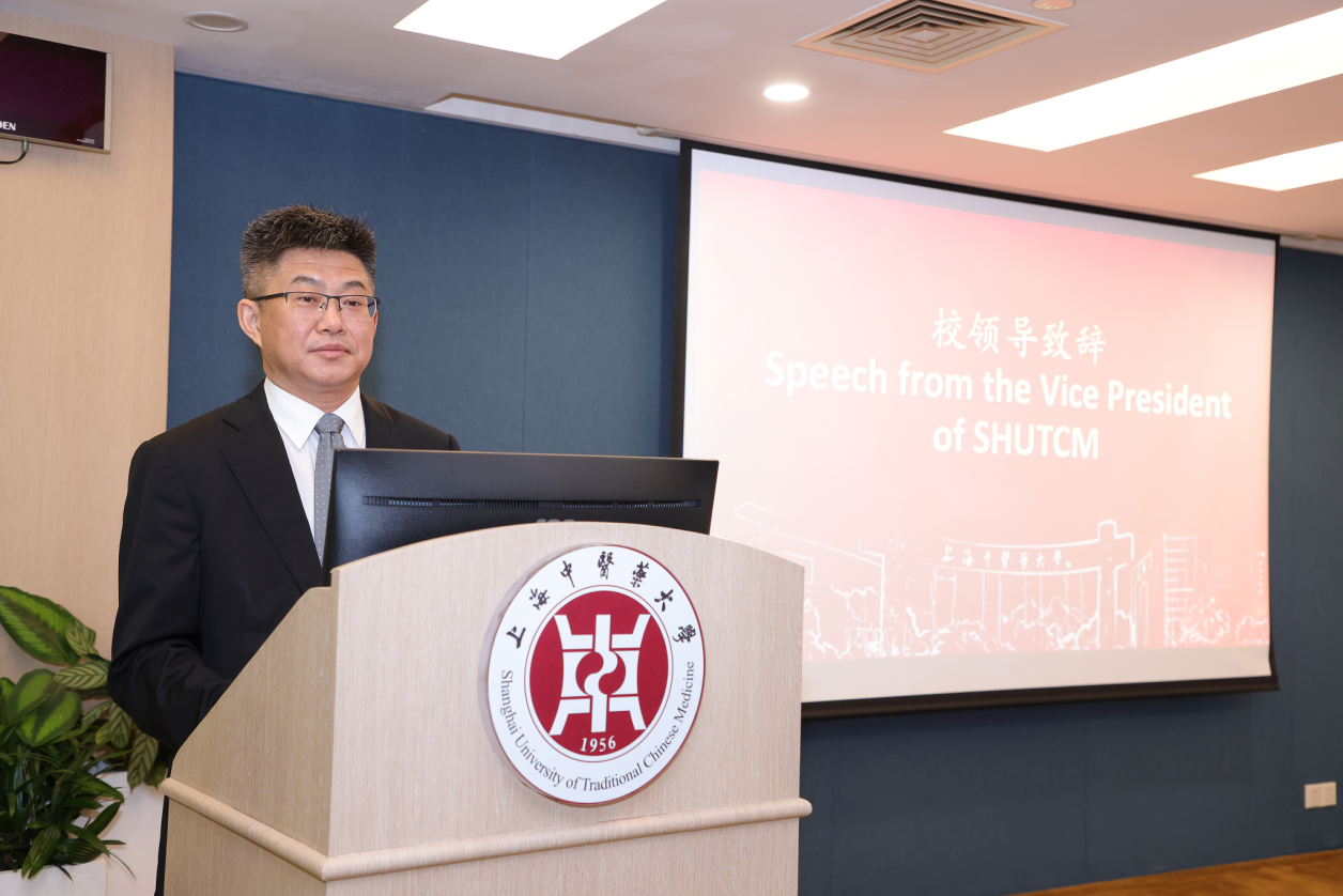 王拥军致欢迎词,并介绍了近年来学校国际教育的发展情况,特别是学校致力于打造“留学上中医”来华留学品牌和具有“上中医”文化特色的国际教育理念。