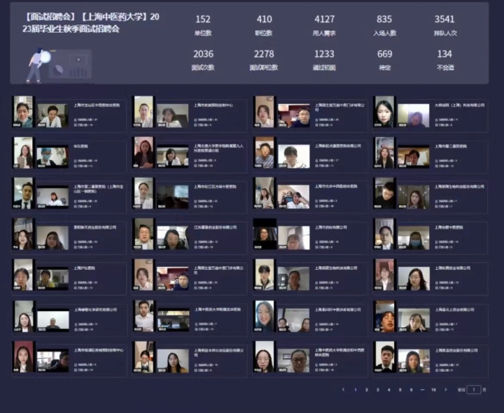 本次招聘会首次采用“空中面试双选会”的形式,汇聚了医疗卫生、生物医药、互联网健康咨询等行业的优质用人单位,152位人力资源负责人集中在线,毕业生足不出户,就能在“空中面试间”与用人单位远程“面面相试”,实现求职“零距离”。