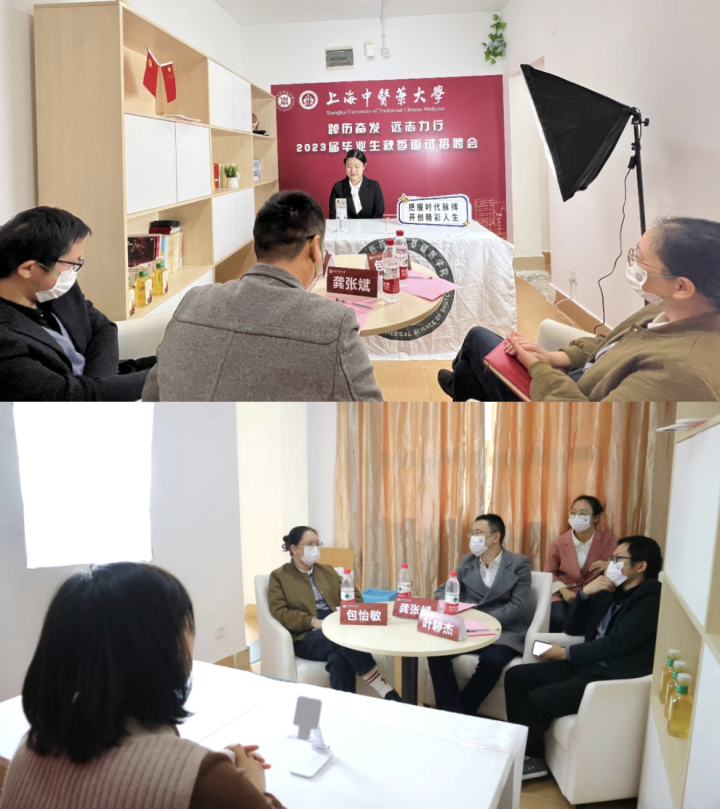 此外,学校还持续在学生社区开展“简历门诊”品牌活动、研究生导师面试指导、低年级学生观摩线上面试等活动。招聘会当天,基础医学院研究生导师龚张斌、包怡敏、叶䁎杰在学生社区“网络面试间”开展了一堂别开生面的“面试指导现场课”。导师现场观察学生面试表现并在面试后提供指导,同时带领学科组4位低年级师门学生观摩学习,引导学生提前做好求职准备。龚张斌教授表示:“导师进入面试现场,是真正让师生同频率同成长。面对新形势,研究生导师更得寻求新方法,对标国家卫生健康事业的发展方向,主动了解市场,反哺人才培养的全过程。”