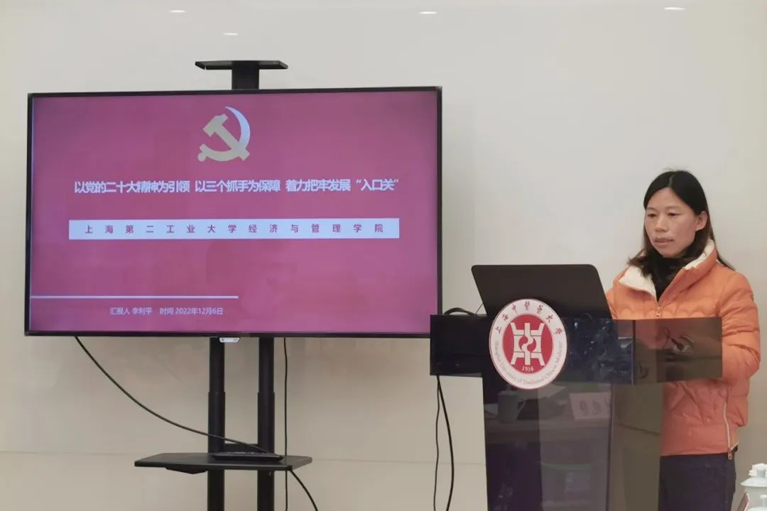 会上,上海第二工业大学经济与管理学院组织员李利平以“以党的二十大精神为引领,以三个抓手为保障,着力把牢发展‘入口关’”为主题、上海立信会计金融学院序伦书院组织员李星星以“守正创新、踔厉奋发:大学生党员教育的创新与实践”为主题、上海科技大学综合办公室党务主管刘晓静以“关于在青年学生和高知群体中发展党员工作的思考”为主题、上海健康医学院护理与健康管理学院组织员何雅敏以“新时代医学生党员发展的思考和实践”为主题、伟德国际victor1946官网党委组织员徐琳以“落实立德树人根本任务,做好发展党员工作‘守门员’”主题分别作交流发言。