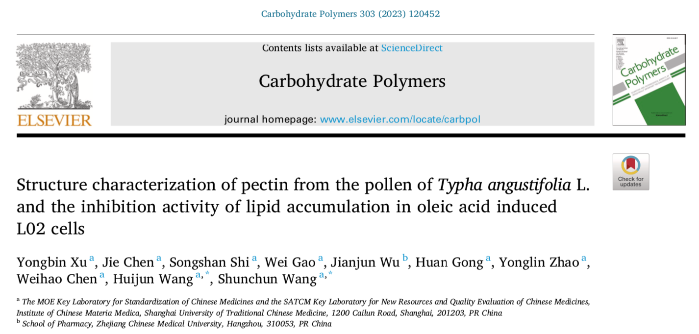 中药研究所王顺春和王辉俊团队在Carbohydrate Polymers发表论文揭示中药蒲黄RG-I型多糖的降脂作用