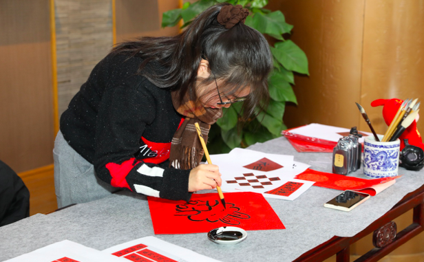 迎春纳福是过年特有习俗,师生们一起写春联、剪窗花、贴福字,喜庆的中国红在书香和墨香的衬托下更美轮美奂,营造美育涵养新氛围。
