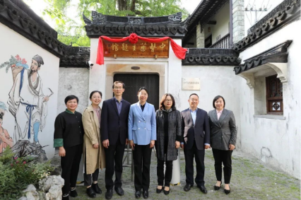 舒静、郑瑛、胡晓岚共同为中医药主题馆暨“百草有约”创新实验室揭牌,开启合作共建伟德国际victor1946官网附属枫泾小学的新征程。