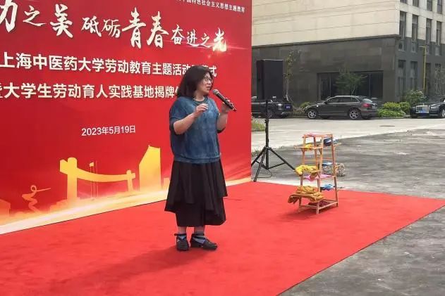 上海戏剧学院邵旻副教授介绍具有传统染色功能的本草染材和天然纤维等染物,进行了“劳动创美——中草药‘邂逅’传统印染”作品展示,激发了在场师生通过劳动传承中华民族传统染织文化、展示博大精深的中华优秀传统文化的热情。