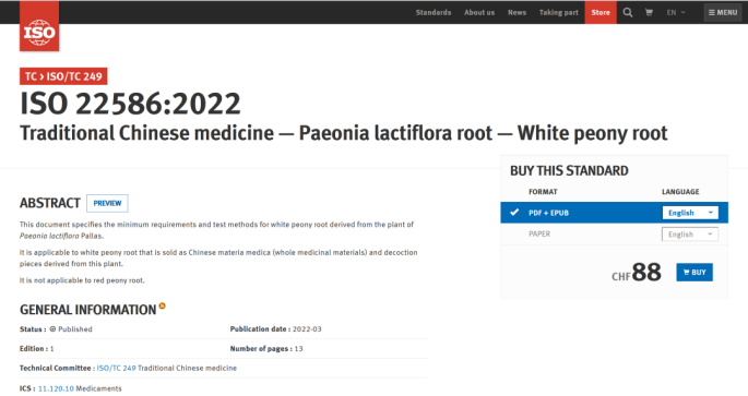 《中医药—白芍》国际标准官方页面