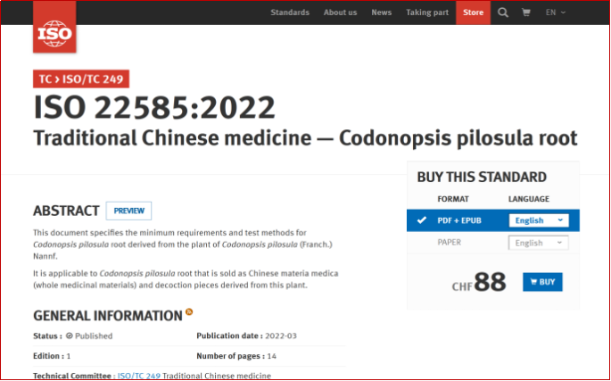 《中医药—党参》国际标准官方页面
