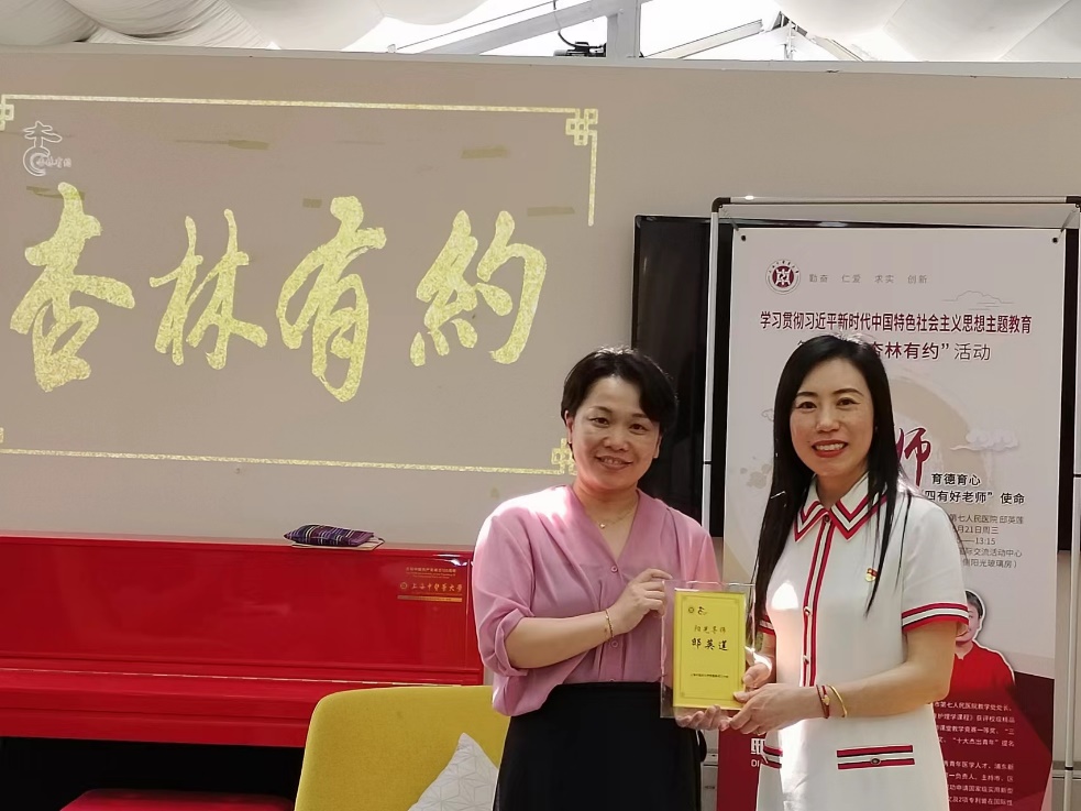 6月21日中午,第39期“杏林有约”教师午间沙龙在中药学院国际交流活动中心举办。本期沙龙特邀学校金牌教师、伟德附属第七人民医院教学处处长邸英莲,推进学习贯彻习近平新时代中国特色社会主义思想主题教育,围绕“育德育心,践行‘四有好老师’使命”这一主题与参会教师开展分享交流。宣传部(党委教师工作部)副部长刘虹主持会议,并向邸英莲颁发“阳光导师”荣誉证书。