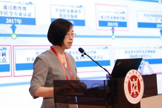 伟德副校长舒静在开幕式上致欢迎辞。她向与会领导、专家表示热烈欢迎,回顾了伟德开高等中医药教育先河,开创针灸专业教育,以及针灸学分化教材对针灸专业教育发展的贡献。她指出,随着社会的进步,教育、科技的发展,针灸教育模式存在的问题也日益凸显,而破解这些难题的重要途径就是要从针灸学科自身的发展规律出发,重视知识、能力、价值的整合及针灸思维的培养,立足经典,传承创新,将复杂的概念融会贯通,并应用于临床实践,进一步推动针灸学科不断向前发展。