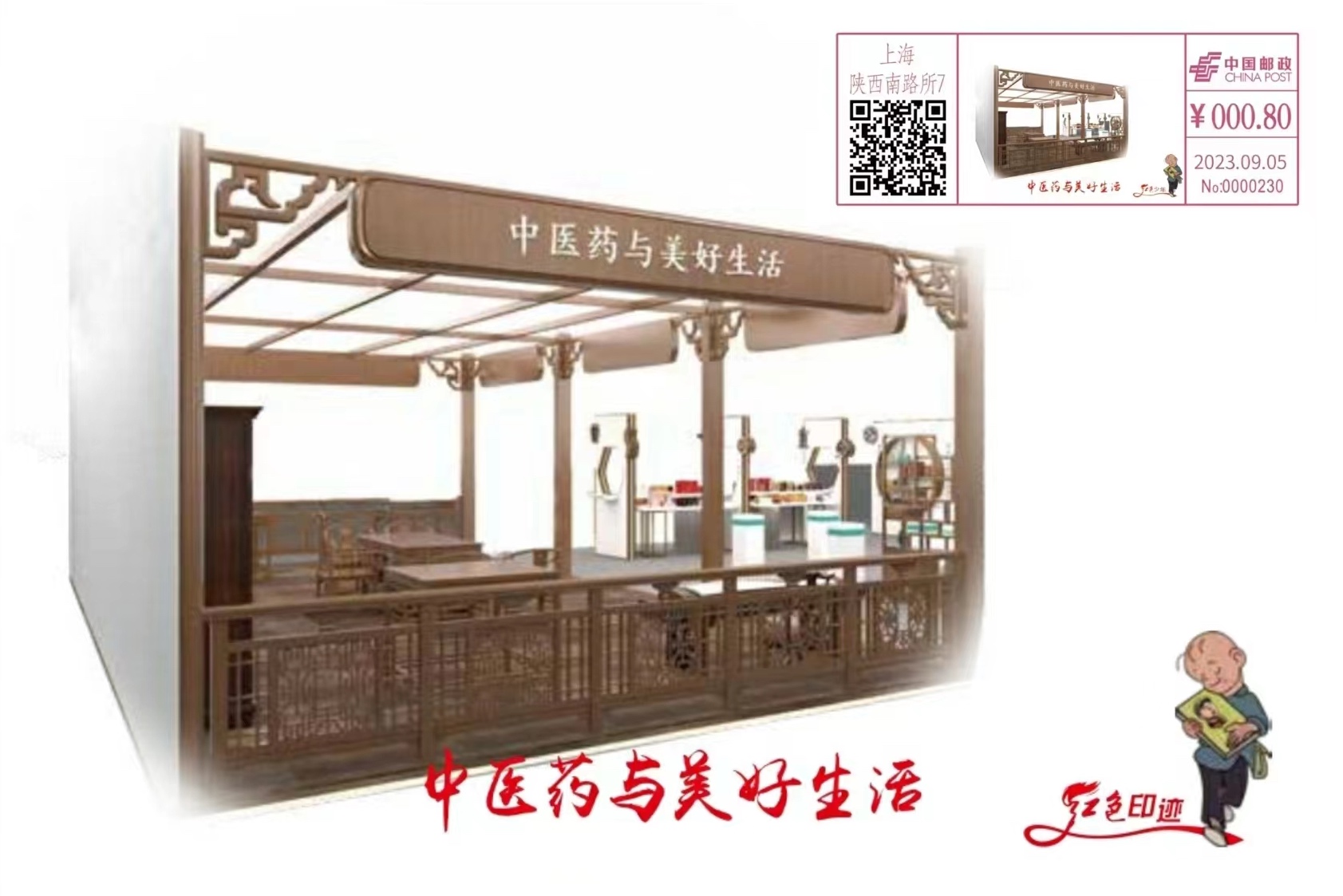 9月5日启用的“中医药与美好生活”邮资机宣传戳由全国第一家红色少年主题邮局——上海红色少年主题邮局制作,属于“2023年红色少年9月”系列CX51型邮资机宣传戳,使用期限为启用当日。有兴趣的观众或集邮爱好者可于当日到上海中医药博物馆“集戳”。伟德国际victor1946官网的新生们可在提前发放的上海中医药博物馆建馆85周年纪念明信片背面写上对亲友想说的“心里话”,再到上海中医药博物馆按戳,将颇有中医药色彩和祝福满满的卡片寄给亲友。