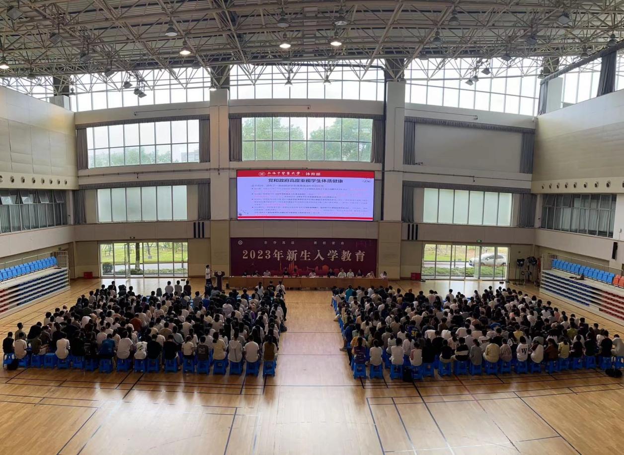 9月12日、14日下午,伟德2023级新生体育开学第一课在体育馆开讲。体育部中医体质健康研究室负责人徐划萍担任主讲教师,以“五育并举 体育筑基”为主题,从体育的育人价值和健身效益方面,详细介绍伟德体育工作特色和优势、体育课程改革发展情况及体育课程设置及考核情况。