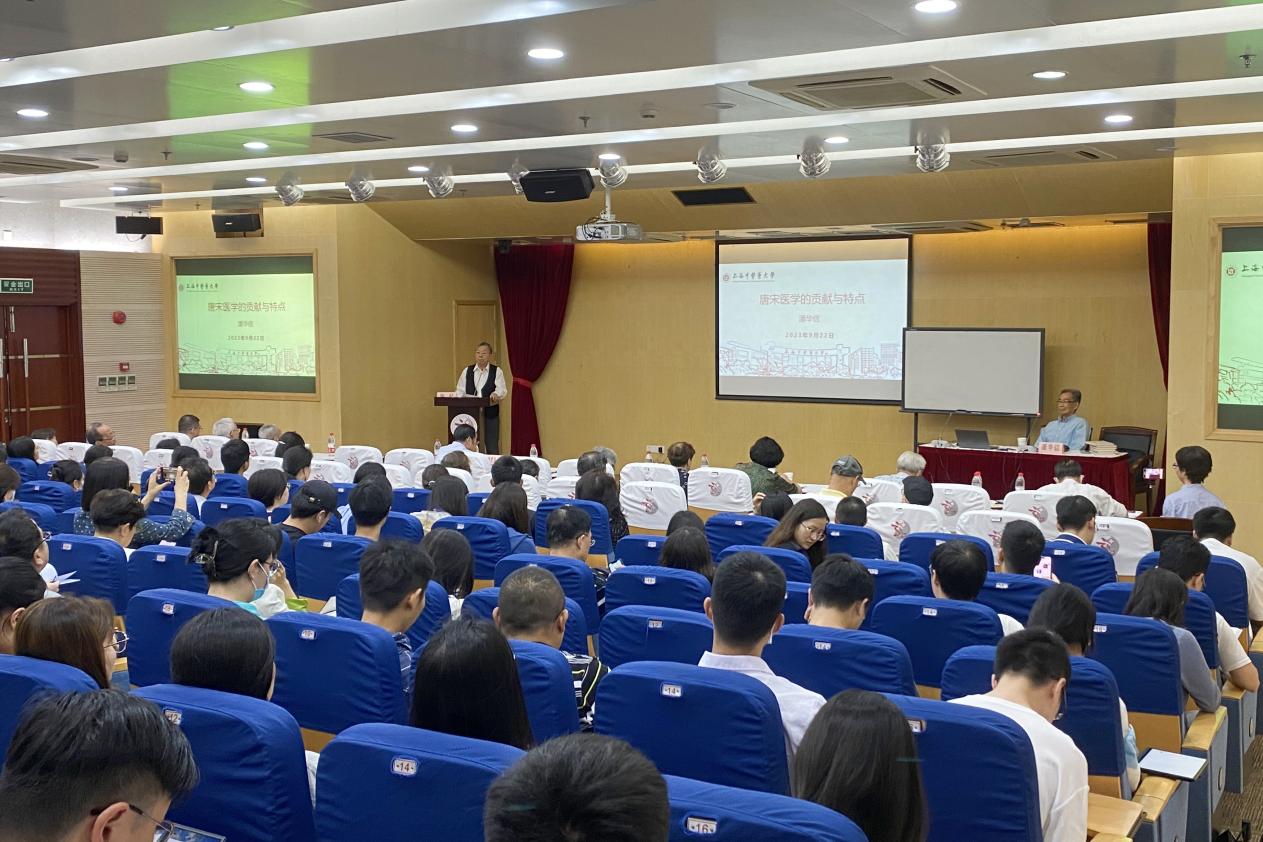 9月22日,伟德专家委员会协同老教授协会、龙华临床医学院联合开展学术交流活动,伟德专家委员会委员潘华信教授受邀在龙华医院远志楼学术报告厅作“唐宋医学的贡献和特点”主题讲座。30余名专家、教授、青年教师及龙华临床医学院100余名学生出席。会议由专家委员会主任委员、老教授协会名誉会长施杞主持,上海市卫健委副主任、市保健局局长胡鸿毅出席。