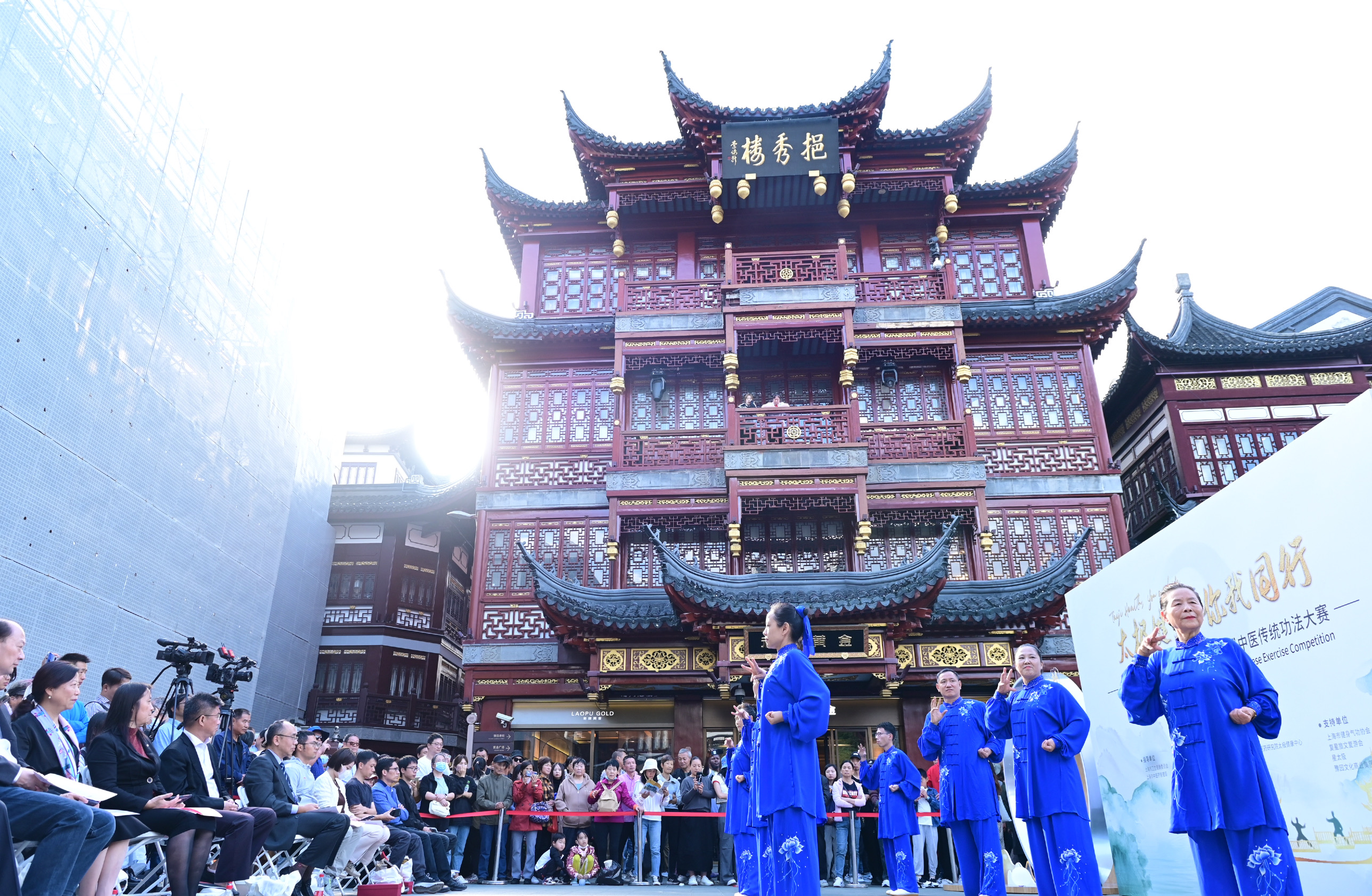 传统中医药养生文化的表达与当下的文旅新时尚碰撞出新的花火:今天的豫园九曲桥广场上,太极拳、八段锦、五禽戏、易筋经等中医传统功法表演引得市民游客纷纷掏出手机拍摄。第二届中医传统功法大赛在此上演,该赛事是上海市中医药三年行动计划“中医药健康素养提升工程”项目的系列活动之一,推进中医药健康养生文化理念融入百姓生活。