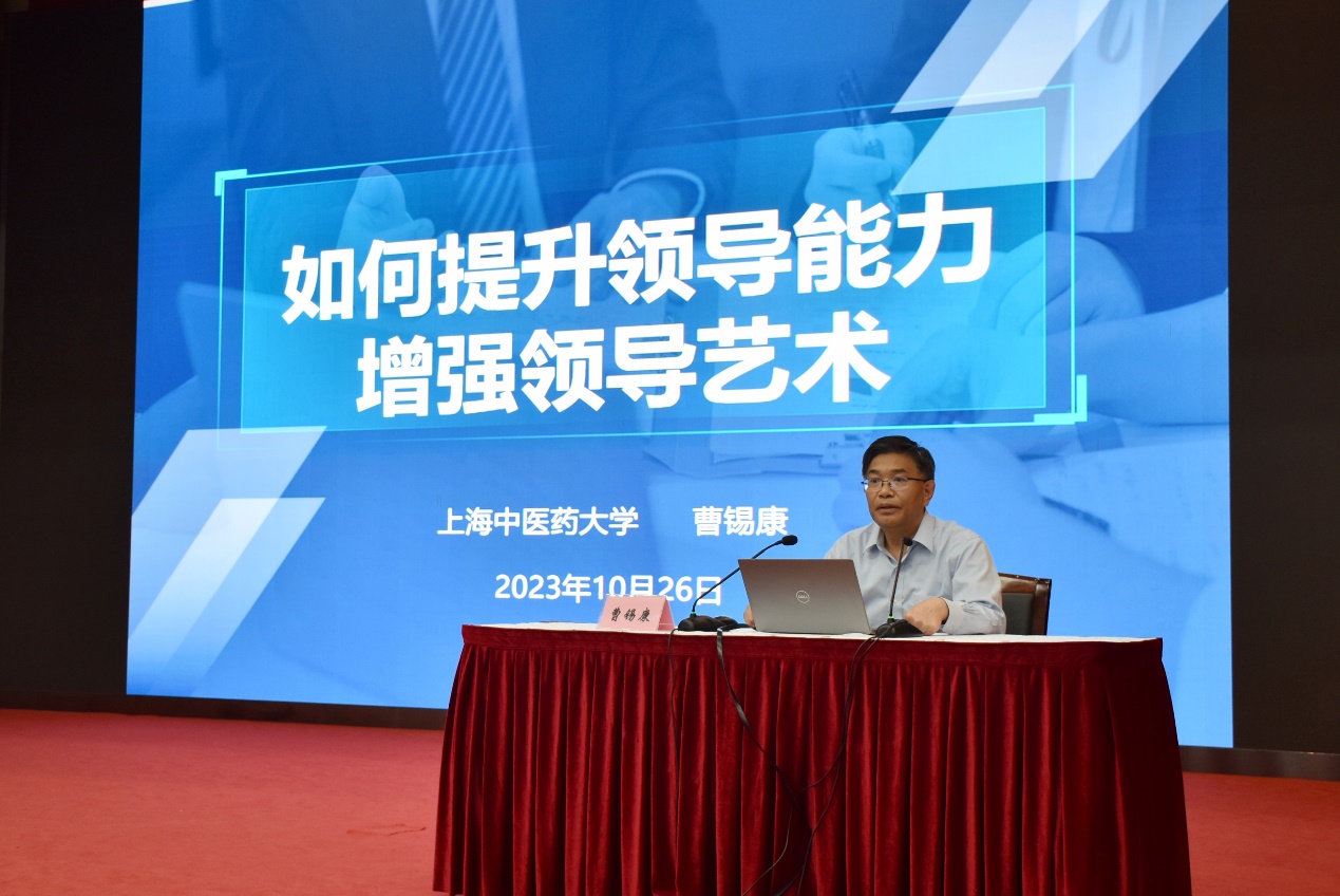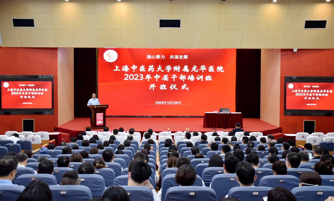 10月26日下午,“凝心聚力,共谋发展”伟德国际victor1946官网附属龙华医院2023年中层干部培训班开班仪式在龙华医院远志楼3楼报告厅举行。校党委书记曹锡康为培训班作首次专题辅导。龙华医院党政领导班子、党政职能科室负责人、业务科室负责人、党支部书记、教研室主任等180余人参加。开班仪式由龙华医院党委副书记、院长陈跃来主持。