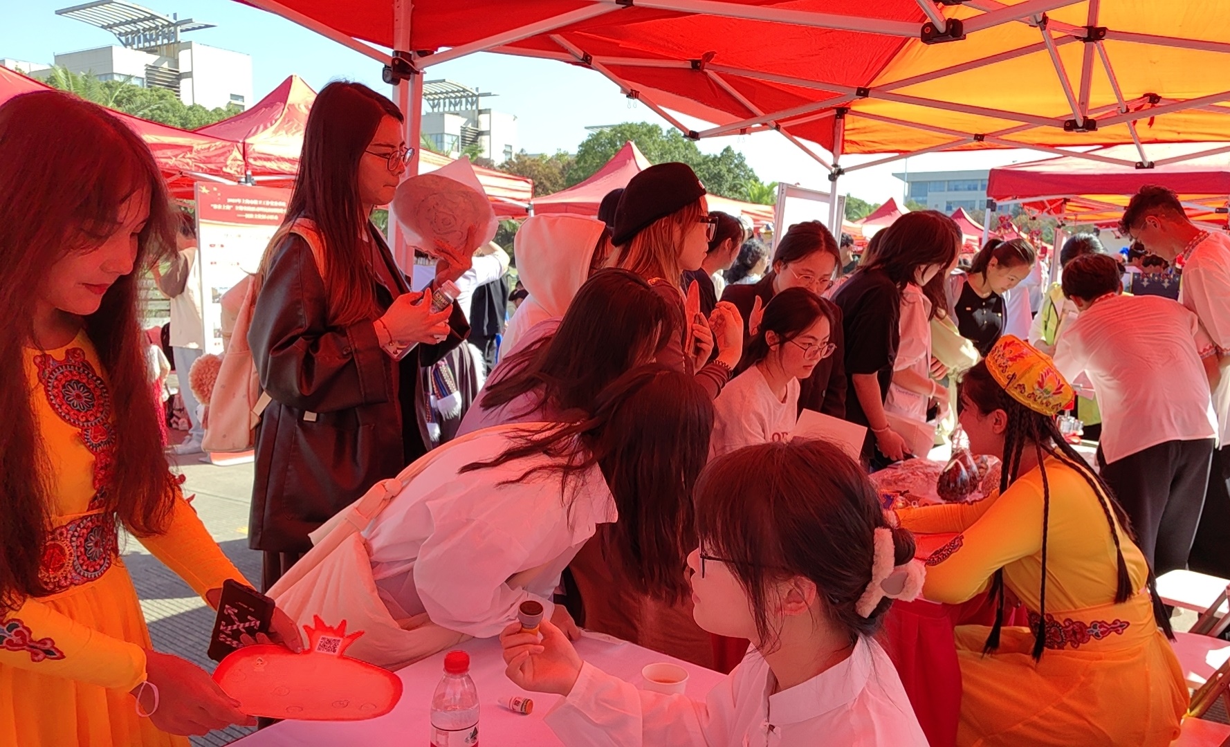 在“民族文化展”集市上,伟德重点展示了上海中医药博物馆文创作品、中药植物标本以及中医药养生茶系列,吸引众多参展师生驻足观摩和现场体验。学生们给前来体验的师生介绍伟德博物馆特色,制作中药特色徽章,讲解生活中常用中药的药用价值和使用方法,还亲手泡制了养生茶给大家品尝。临床专业的学生还为前来咨询的师生现场把脉,提供健康咨询等服务,在“望闻问切”中深刻感受中医药文化的博大精深,现场人气火爆,深受高校师生的喜爱和好评,展现了伟德学生的蓬勃朝气和文化自信。