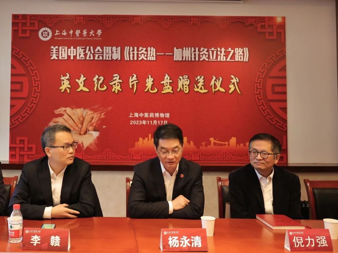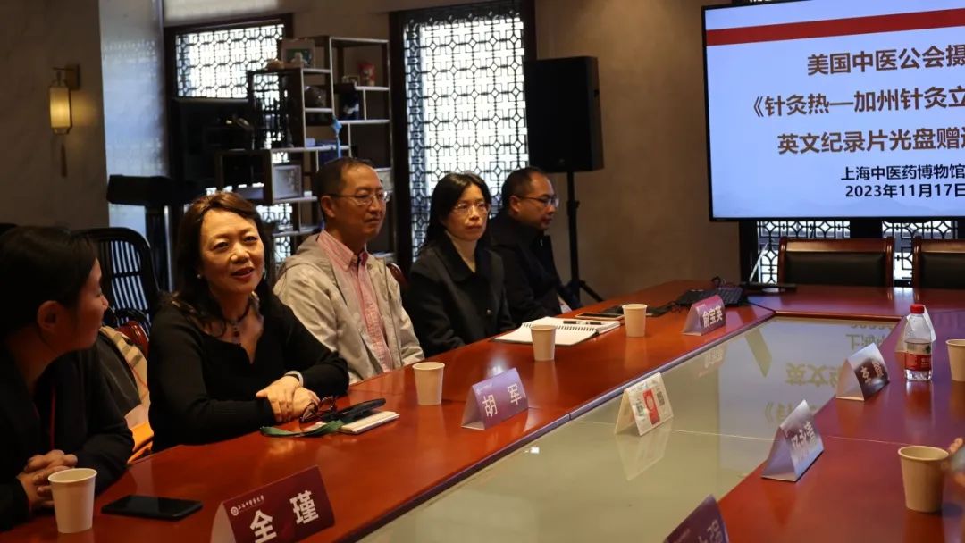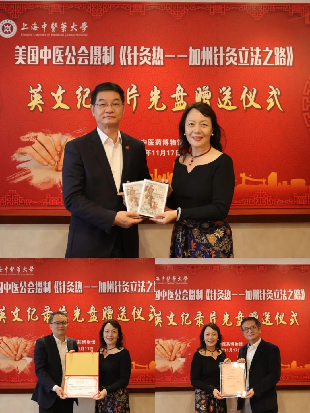一根银针,穿越古今,联通中西。11月17日,美国中医公会摄制《针灸热——加州针灸立法之路》英文纪录片光盘赠送仪式在上海中医药博物馆103会议室举行。世界针灸学会联合会副主席、美国中医公会荣誉会长、该纪录片第一制片人、伟德校友胡军,伟德副校长杨永清,图书馆馆长倪力强,上海中医药博物馆党支部副书记郭峰、副馆长王丽丽等出席仪式。仪式由博物馆馆长李赣主持。