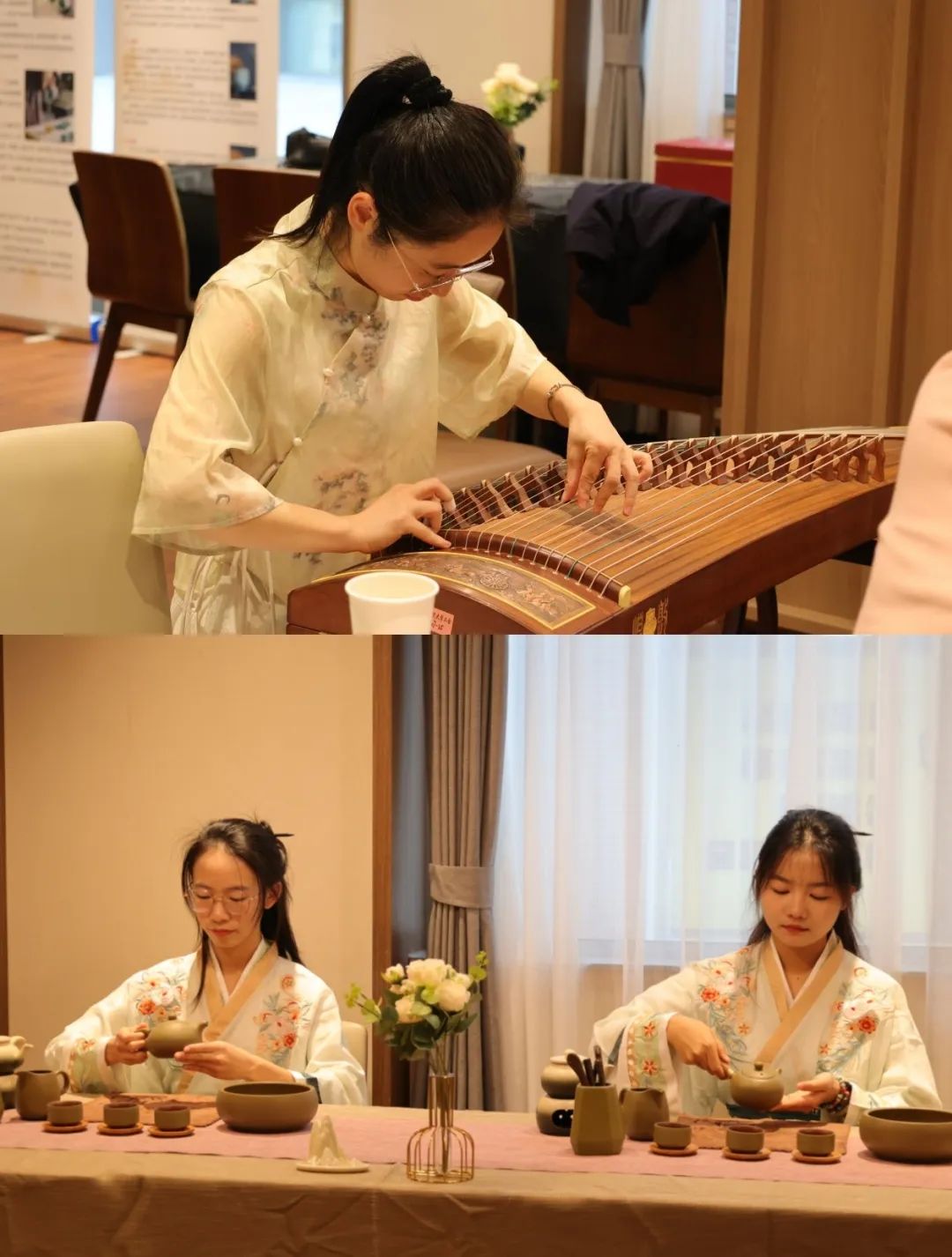 活动特邀伟德国际victor1946官网发展规划处曾获第五届“洛杉矶”国际青少年音乐公开赛优秀指导教师奖的青年教师陈璐带来古筝独奏;伟德国际victor1946官网杏林茶社学生韦柳楠、蒋丽静呈现茶艺(静雅行茶八式)表演。现场的茶友们闻着茶香、聆听民乐、欣赏茶艺、品着好茶,对这场茶文化课堂极为认可,沉浸在浓厚的传统文化氛围中。