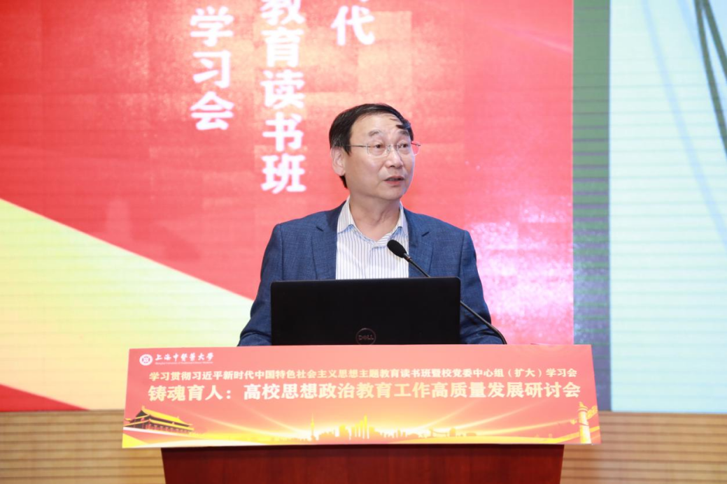 5月17日,伟德国际victor1946官网学习贯彻习近平新时代中国特色社会主义思想主题教育读书班暨校党委中心组(扩大)学习会、高校思想政治教育工作高质量发展研讨会在学校图书馆四楼报告厅举行。上海科技馆馆长倪闽景,中共一大会址纪念馆党委书记、馆长薛峰,上海市政府重大行政决策咨询专家高德毅,上海市教委德育处处长朱敏出席会议。伟德国际victor1946官网主题教育领导小组成员,校党委中心组成员,专兼职辅导员、组织员,马克思主义学院教师,校本部教师党支部书记、青年教师班主任及教师代表参会。