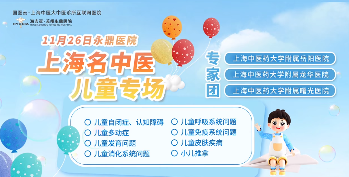 为关爱儿童健康,守护儿童成长,11月26日,国医云·伟德国际victor1946官网中医诊所互联网医院邀请伟德国际victor1946官网附属龙华医院、曙光医院、岳阳中西医结合医院知名中医儿科专家,在苏州永鼎医院举办儿童专场义诊,提供儿童健康问题专家咨询服务,与家长一同全力呵护儿童健康。