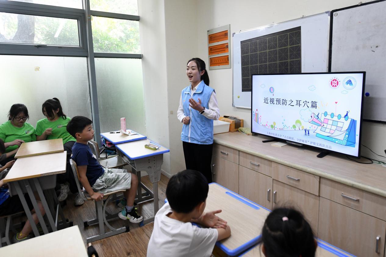 对于近视眼青少年,志愿者服务队积极参与上海市中医药学会开展《中医适宜技术防控儿童青少年近视服务流程规范》制定,开展服务与调研,形成可复制、可推广、行之有效的服务流程规范,有力促进青少年近视防控工作的科学化、规范化开展,助力青少年视力健康,相关事迹被全国40多家主流媒体宣传报道。“‘手’护‘睛’彩世界——中医特色技术防治青少年近视现状调研与标准化服务流程建设”和“点亮眼睛,守护‘瞳’真——‘双减’政策下青少年用眼健康的多位科普”荣获“知行杯”上海市大学生社会实践大赛二等奖。