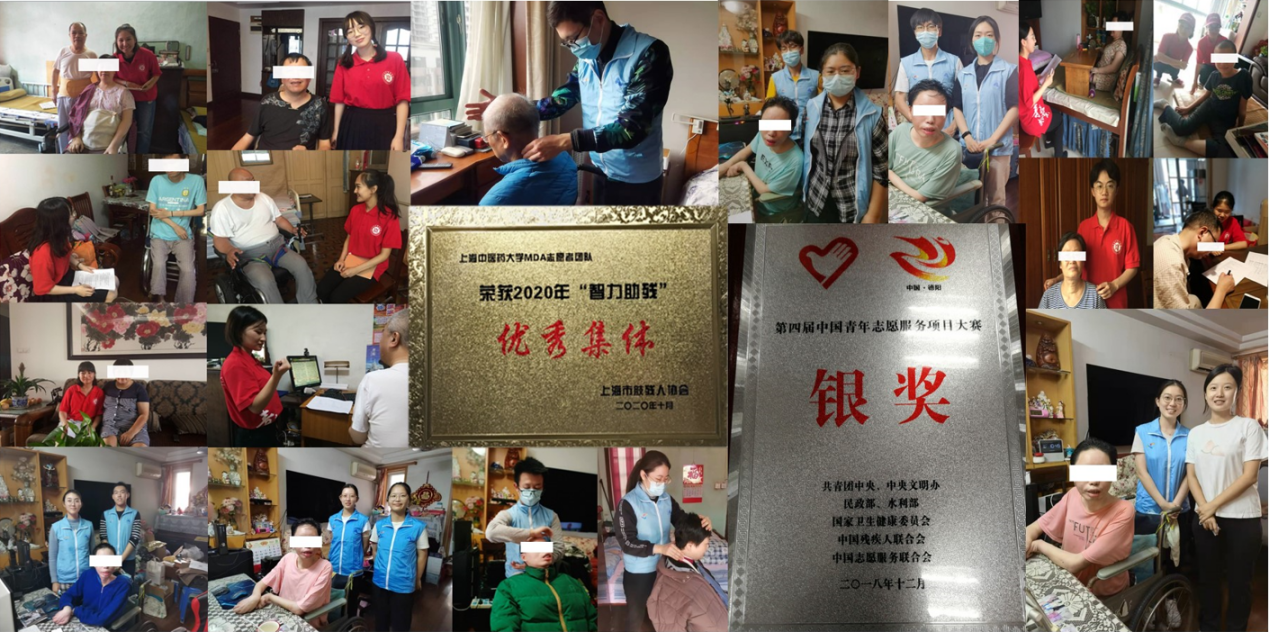 “温暖渐冻心”是志愿者服务队传承时间最悠久的品牌项目。自志愿者服务队成立以来,队员们铭记“有时去治愈,常常去帮助,总是去安慰”,20年如一日地服务、帮助、关爱肌萎缩侧索硬化患者。2018年荣获中国青年志愿服务项目大赛银奖,2019年获上海市肢残人协会智力助残二十周年表彰大会特别贡献奖。近3年来,连续荣获上海市肢残人协会“智力助残”优秀集体奖、优秀组织者、优秀志愿服务者等。