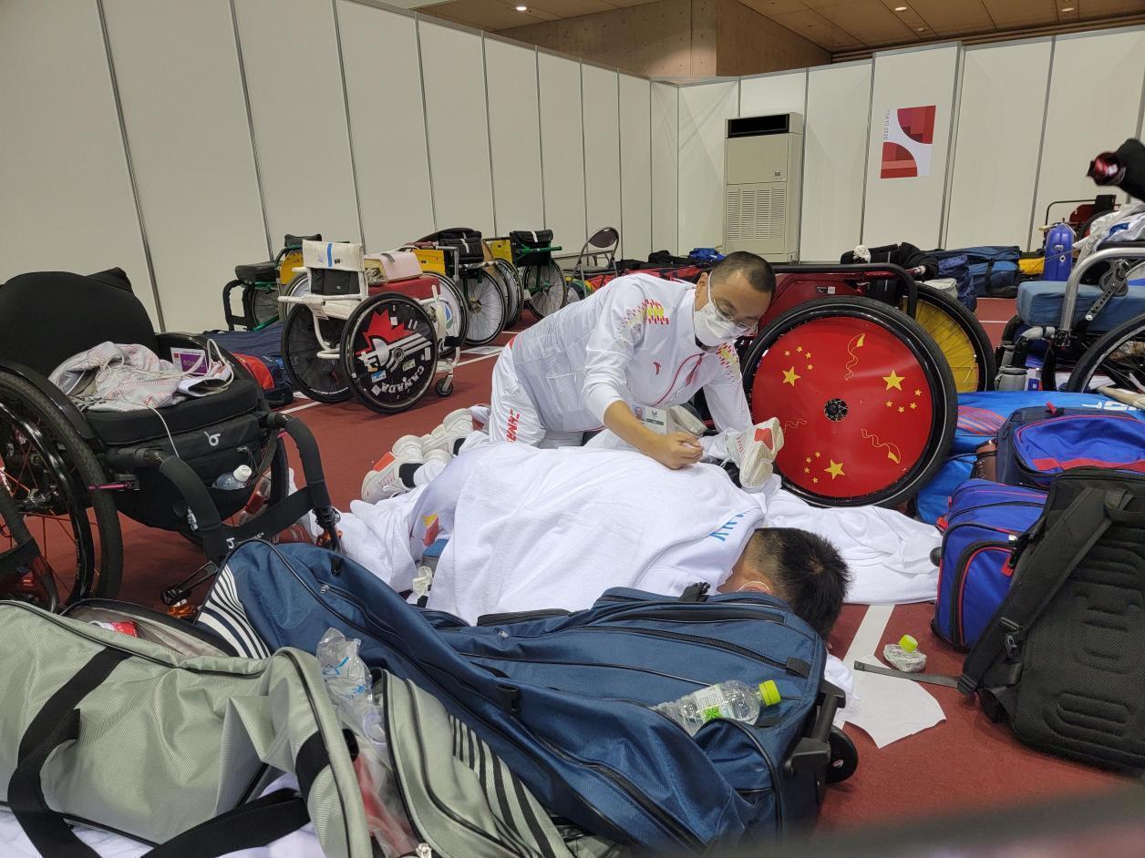 2013年起,志愿者服务队骨干教师分批前往训练基地,给高水平残疾人运动员进行运动损伤的康复治疗。2015年随轮椅击剑队前往意大利参加世锦赛,2019年随轮椅竞速队赴瑞士参加世锦赛,2021年随轮椅击剑队前往日本参加东京残奥会,作为队医,开展肌肉放松、损伤治疗、心理疏导、急症处理等工作,为中国代表队取得佳绩提供有力的医疗保障。