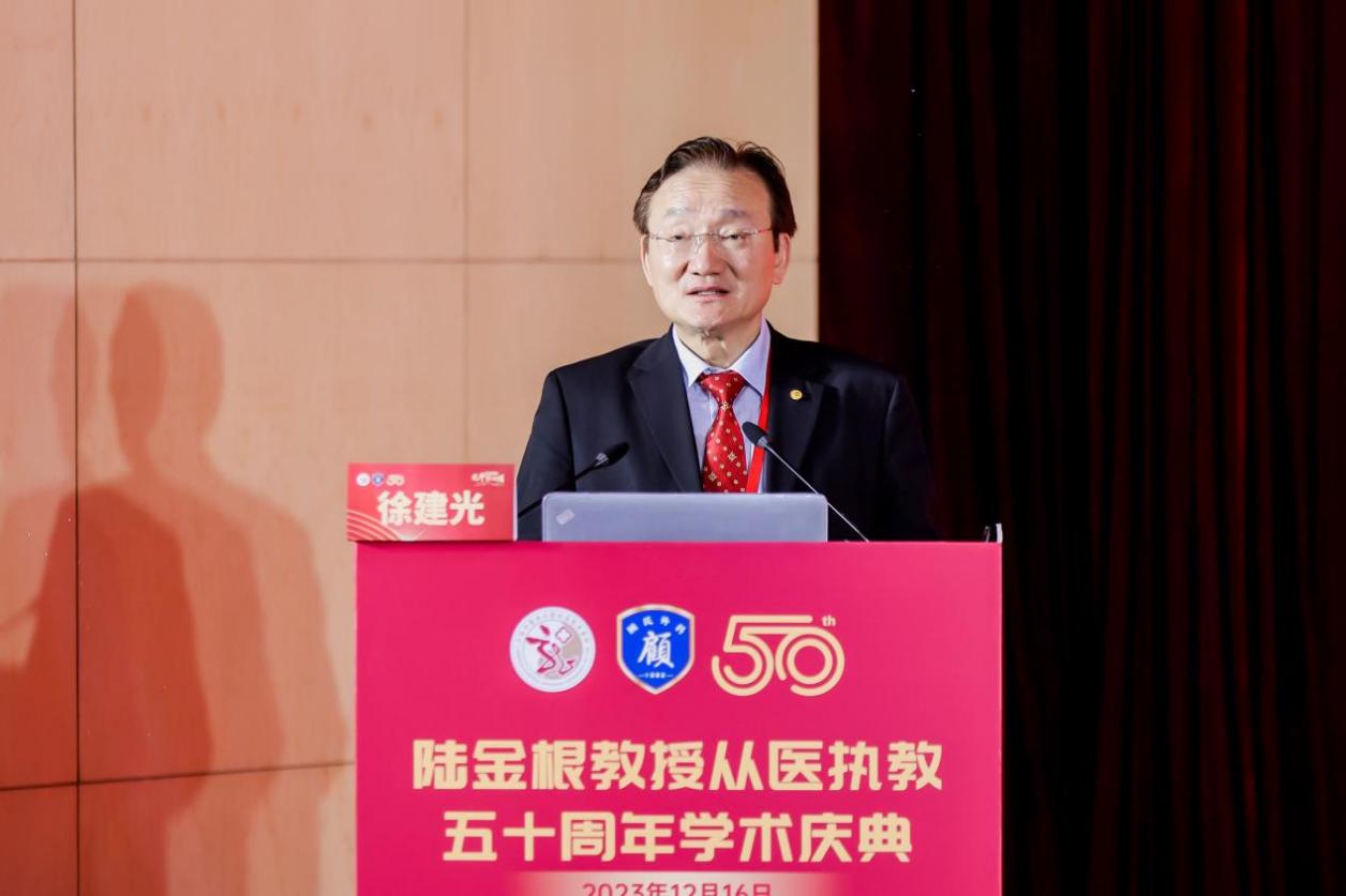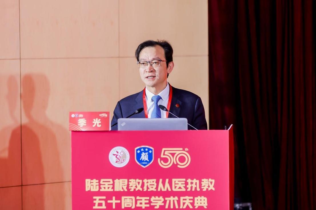 “陆金根教授从医执教50周年学术庆典”作为本届龙华肛肠周的压轴活动,更吸引了全国近500位专家线下相聚。中国科学院院士、复旦大学附属中山医院院长樊嘉,上海市人大教科文卫委员会主任委员、上海市医学会名誉会长、上海市医师协会会长徐建光,上海市教卫工作党委一级巡视员郑锦,上海市保健局局长、上海市中医药学会会长胡鸿毅,上海市医事团体联合管理发展中心副主任、上海市中西医结合学会常务副会长顾璇,伟德国际victor1946官网党委副书记、校长季光等领导出席并致辞。