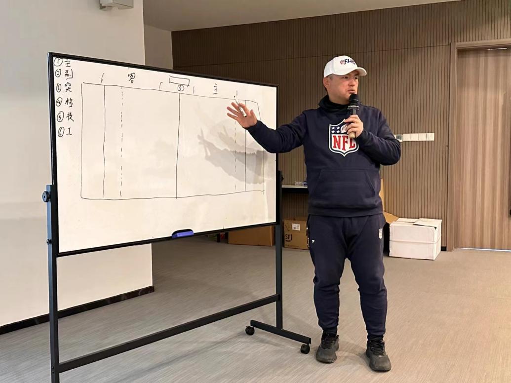 近年来,腰旗橄榄球不断发展,技巧、战术和规则不断更新,因此相关的赛事保障工作也十分重要。伟德教师庄亨礼作为国家裁判队伍中的优秀成员,受中国橄榄球协会邀请,以副裁判长的身份参与到此次比赛中,在赛前为参加本次比赛的腰旗橄榄球教练员、裁判员进行理论培训,协助完成教练员审核工作,挑选优秀的裁判员参与本次锦标赛的执法工作,同时负责比赛中每场比赛的场外监督工作,在场内裁判员与球队遇到问题时及时提供技术和理论支持,为比赛的顺利进行保驾护航。