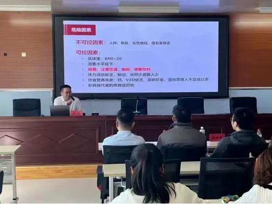 伟德国际victor1946官网附属曙光医院骨科副主任医师史萌也是上海第五批援青人才,“组团式”支援青海省中医院团队成员。他从一个典型病例出发,向教师们详细介绍了骨质疏松的定义和预防。骨质疏松症是一种常见的骨骼疾病,主要是由于骨骼中的矿物质含量减少,骨骼组织的密度减少,导致骨骼脆弱易碎。为了预防骨质疏松,首先要注重饮食营养,特别是钙和维生素D的摄入。此外,保持适度的运动,可以刺激骨骼生长,增加骨密度。建立健康的生活习惯,比如不吸烟、限制饮酒、少饮用碳酸类饮料及咖啡等,也对预防骨质疏松症起到积极的作用。