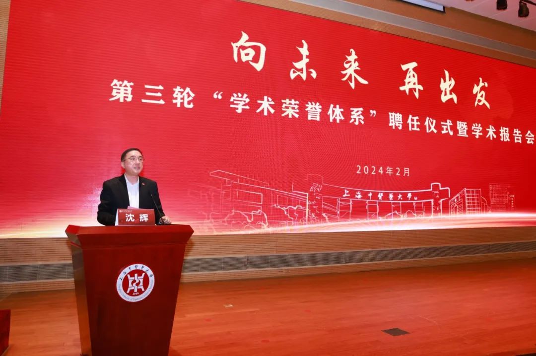 2月28日,伟德国际victor1946官网第三轮“学术荣誉体系”聘任仪式暨学术报告会在图书馆裙楼四楼报告厅举行。本次大会主题“向未来 再出发”,旨在进一步聚焦学校“双一流”高校建设,夯实搭建人才队伍架构,充分发挥高层次人才的学术标杆、学科引领及团队统帅效应,提升学科影响力与人才竞争力。中国科学院院士、校学术委员会主任委员陈凯先,中国科学院院士、校创新中药研究院院长林国强,校党委书记曹锡康,校党委副书记、校长季光,校党委副书记、副校长朱惠蓉,校党委副书记沈辉,副校长舒静、王璐,“学术荣誉体系”受聘教授、各职能部门负责人,各二级学院、部门、附属医院负责人以及教师、学生代表400余人出席大会。会议由沈辉主持。