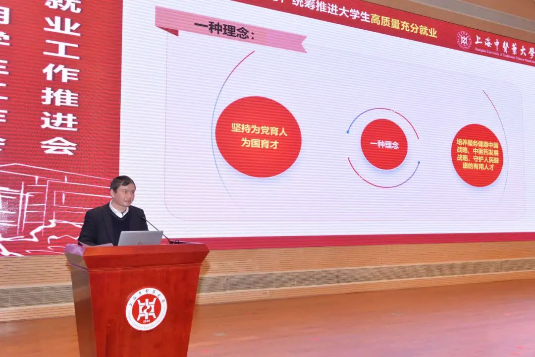 为深入学习贯彻习近平新时代中国特色社会主义思想和党的二十大精神,贯彻落实习近平总书记关于教育的重要论述,3月6日,学校2024年新学期学生工作会暨就业工作推进会在图书馆裙楼四楼报告厅举行。校党委书记曹锡康,校长季光,国医大师、学校原校长施杞,校党委副书记、副校长朱惠蓉,副校长舒静,市教委学生处处长丁良,复旦大学马克思主义学院教授、伟德导师团导师高国希出席会议,学校相关职能部门负责人,各二级学院、研究生培养单位主要负责人、学生工作负责人,全体专、兼职辅导员及青年教师班主任,以及导师团导师代表、学科组育人导师代表、学生骨干近400人参会。
