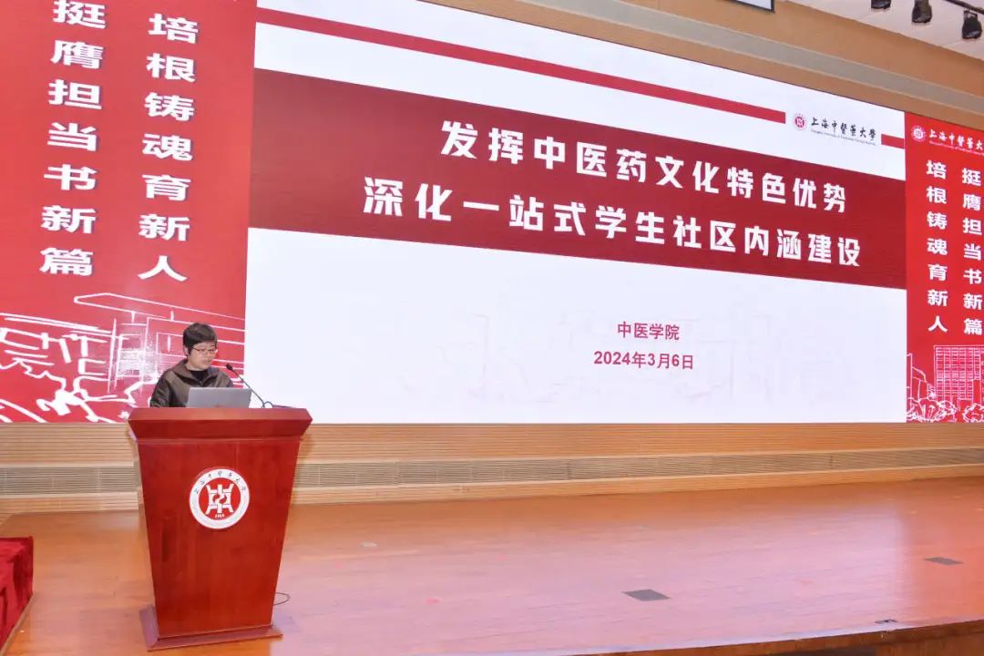 中医学院以“发挥中医药文化特色优势,深化一站式学生社区内涵建设”为题进行了交流发言,展示了学院通过“一楼一品”项目建设,把中医药文化特色转化为育人优势,不断深化有中医药文化特色的“一站式”学生社区建设的探索。