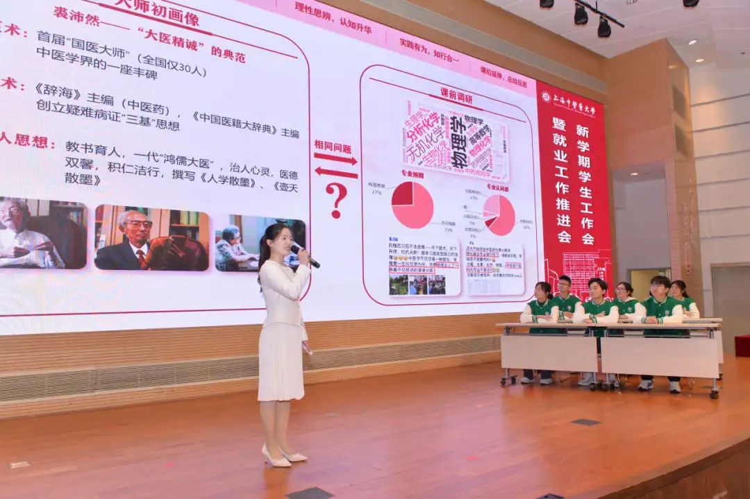 朱惠蓉对新学期学生工作进行部署,她指出,当前学生工作面临思政育人形势复杂多变,学校将进一步推动“跨界协同育人共同体”向学科组育人拓展,推进“一站式”社区综合育人项目,探索国际学生育人工作一体化建设,打造文化育人系列品牌,进一步为中医药事业发展作出上中医贡献。