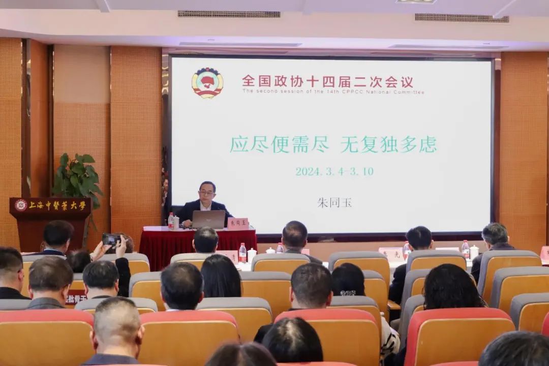 朱同玉传达全国政协十四届二次会议的主要内容,分析了本次全国两会对教育、医疗等民生领域的关注点。他介绍了自己向全国两会提出的《建议药品试验数据保护制度》等提案,并分享了作为全国政协委员参政议政的心得和成果。